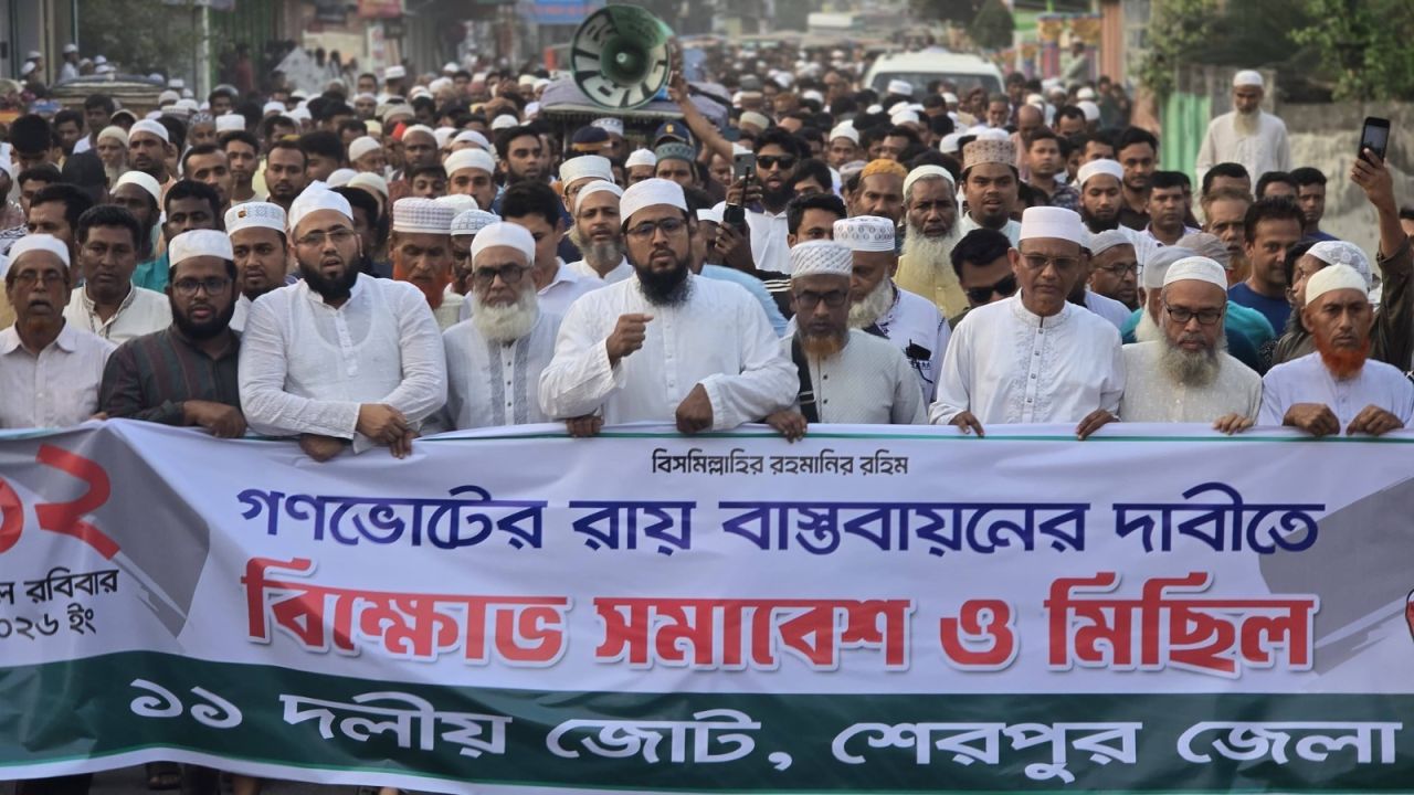 গণভোটের রায় বাস্তবায়নের দাবিতে শেরপুরে বিক্ষোভ মিছিল করেছে ১১ দলীয় জোট। রোববার (১২ এপ্রিল) বিকেল শহরের খোয়ারপাড় থেকে বিক্ষোভ মিছিল শুরু হয়ে শহর প্রদক্ষিণ শেষে থানার মোড়ে এসে শেষ হয়।