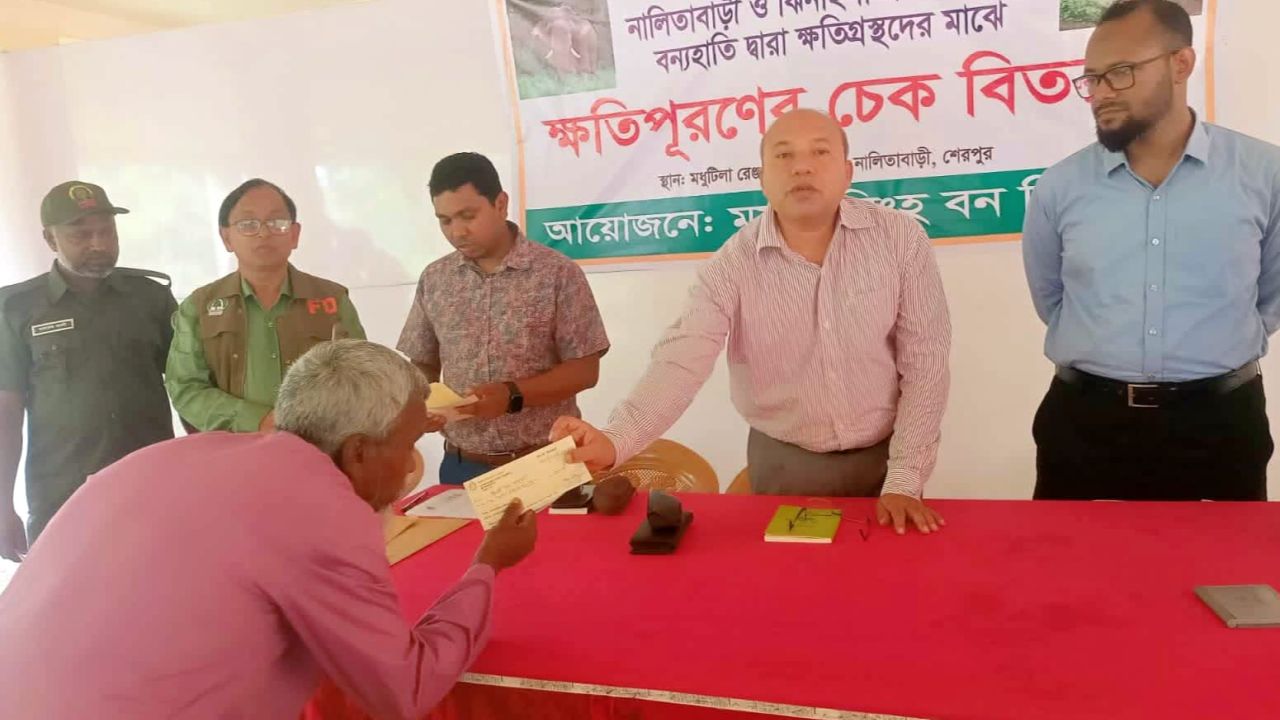 অনুষ্ঠানে নালিতাবাড়ী ও ঝিনাইগাতী উপজেলার সীমান্তবর্তী গারো পাহাড়ি এলাকায় বন্যহাতি দ্বারা ঘরবাড়ি, সবজি ও ফসল আবাদে ক্ষতিগ্রস্থ ৫৩ জনকে ৮ লাখ ৫৯ হাজার টাকার চেক বিতরণ করা হয়।