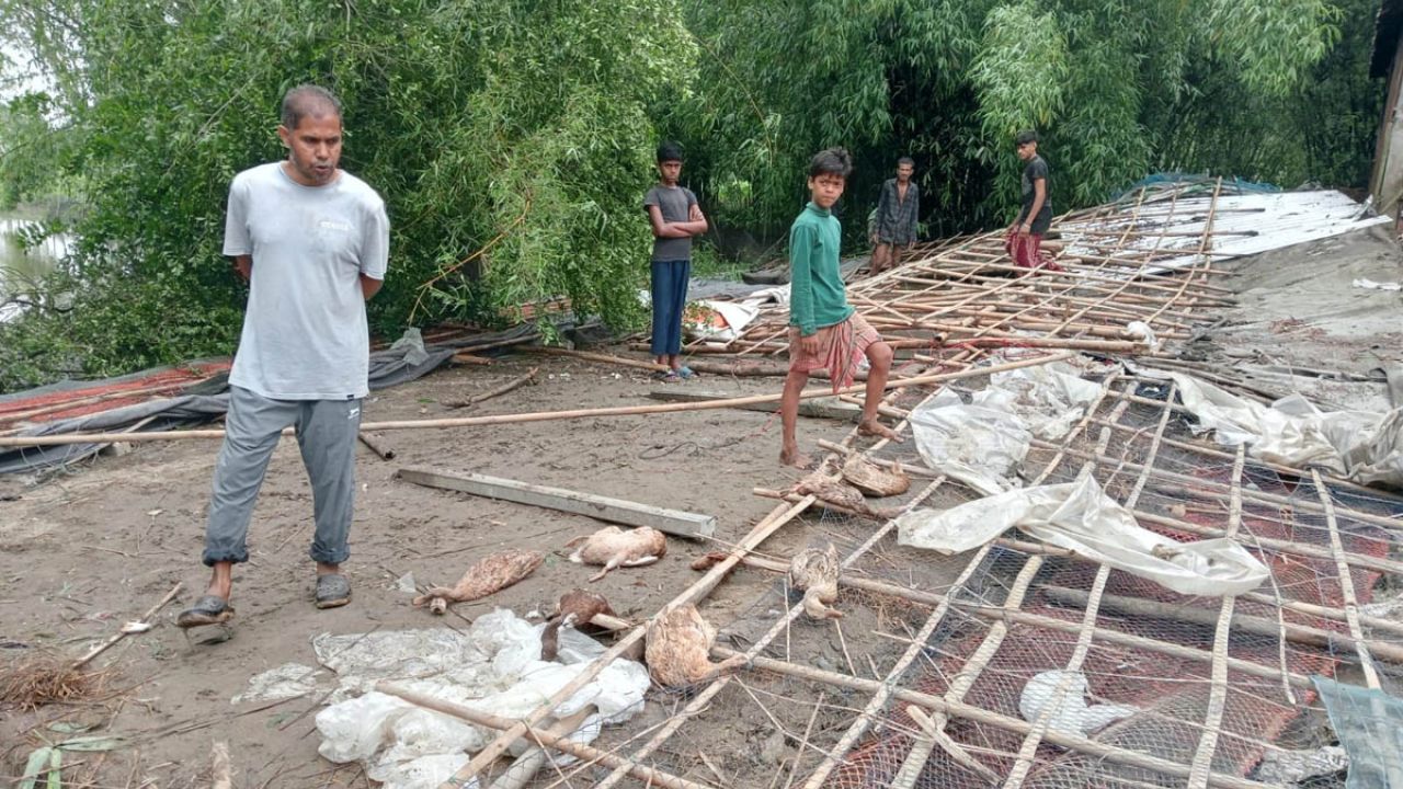 বুধবার দুপুরে সরজমিনে গিয়ে দেখা যায়, ঝড়ে হাঁসের খামারের ঘরটি সম্পূর্ণরূপে বিধ্বস্ত হয়েছে। মৃত হাঁস ও ডিম গুলো ছড়িয়ে ছিটিয়ে রয়েছে। শ্রমিকরা ঘর মেরামতের জন্য কাজ করছে।